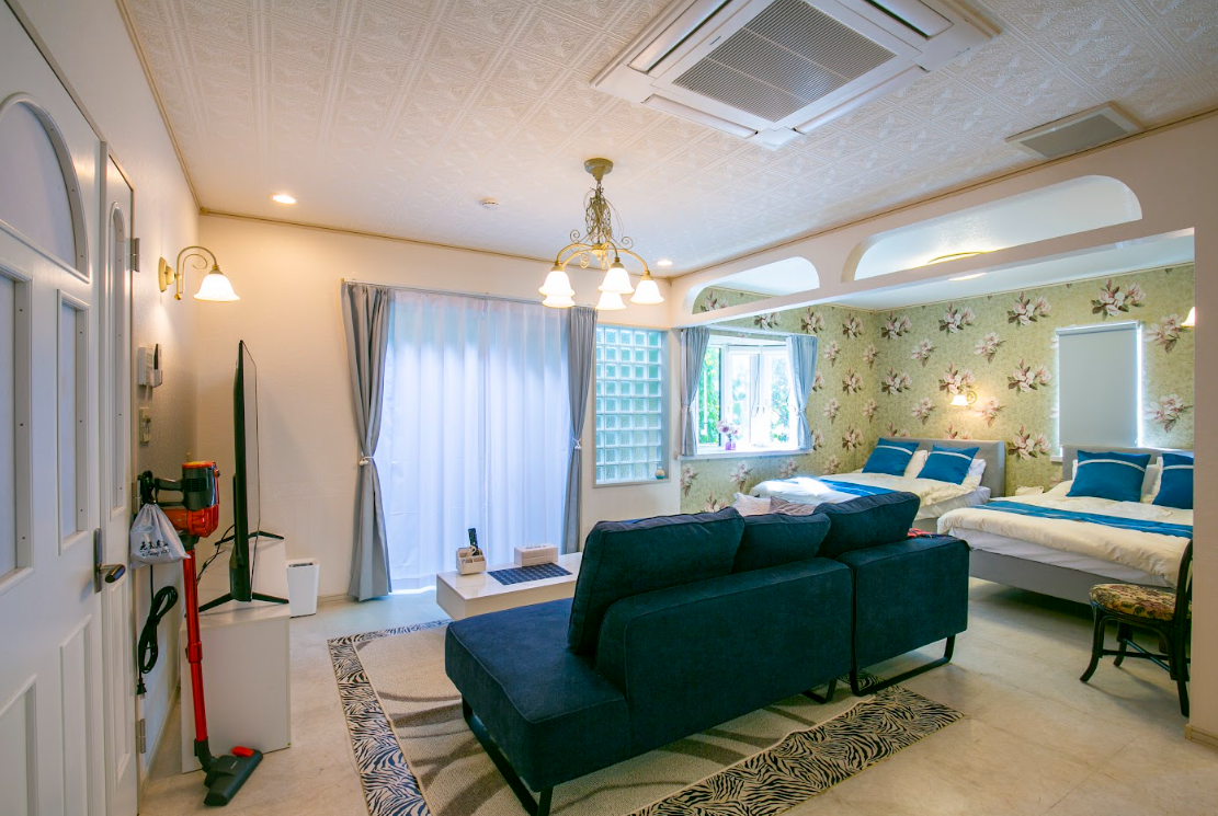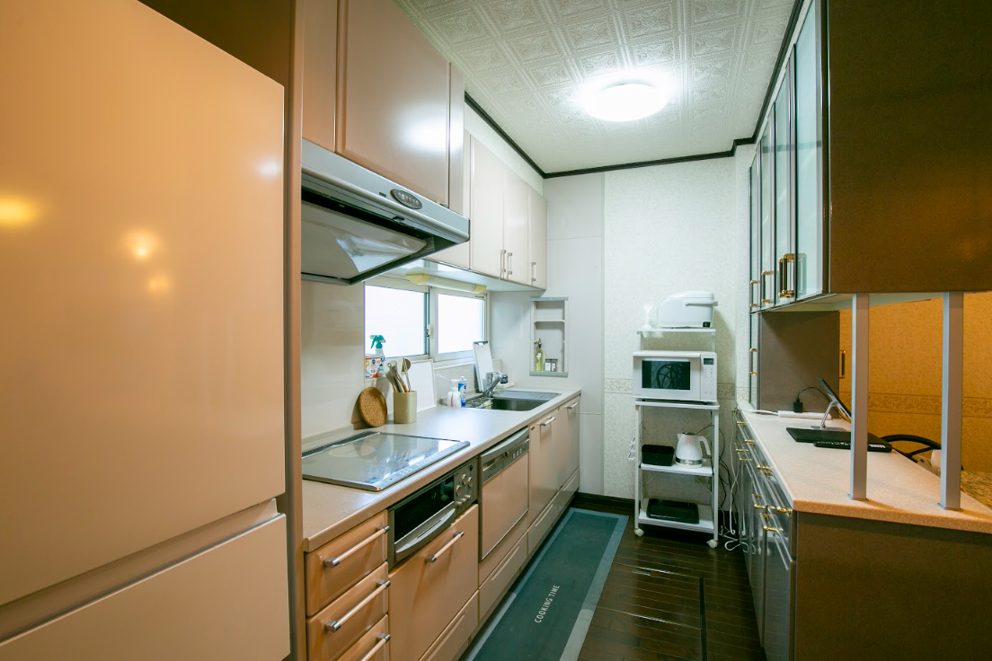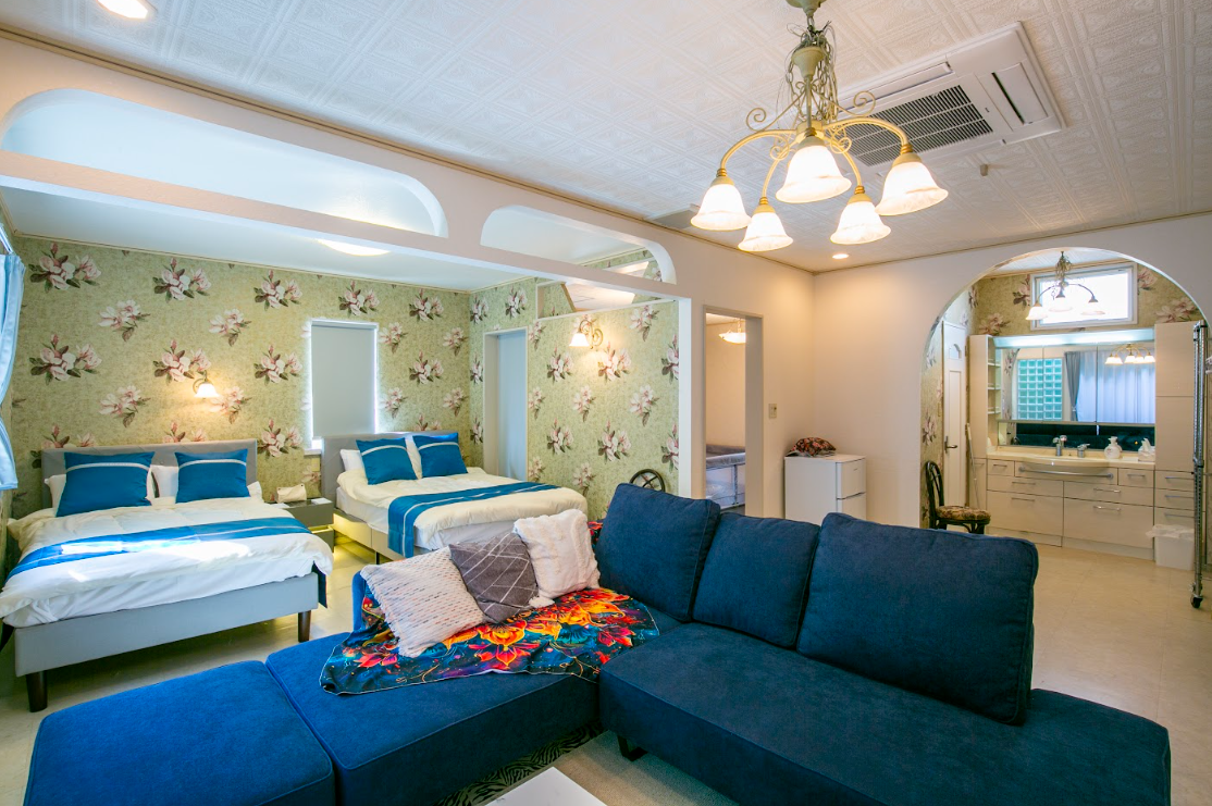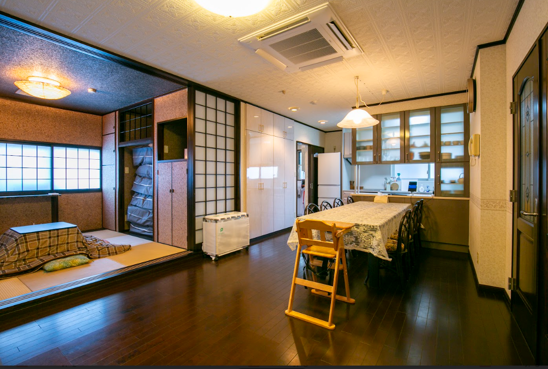 숙박 시설은 거실, 다이닝룸, 서양식 침실 2개, 일본식 객실 1개, 다목적실 1개로 구성된 4베드룸, 4베드룸 주방(LDK)입니다.