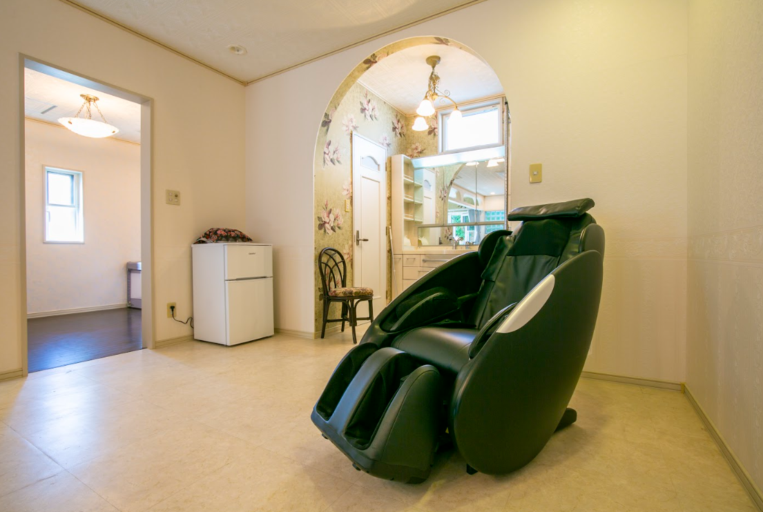 거실에는 편안하게 쉴 수 있는 넓은 소파와 지친 몸을 달래줄 마사지 의자가 마련되어 있습니다.